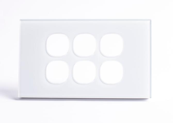 6 Gang Grid & Plate Only Tempered Glass Off White - SPARKELEC SWS6TZ/WH/CP