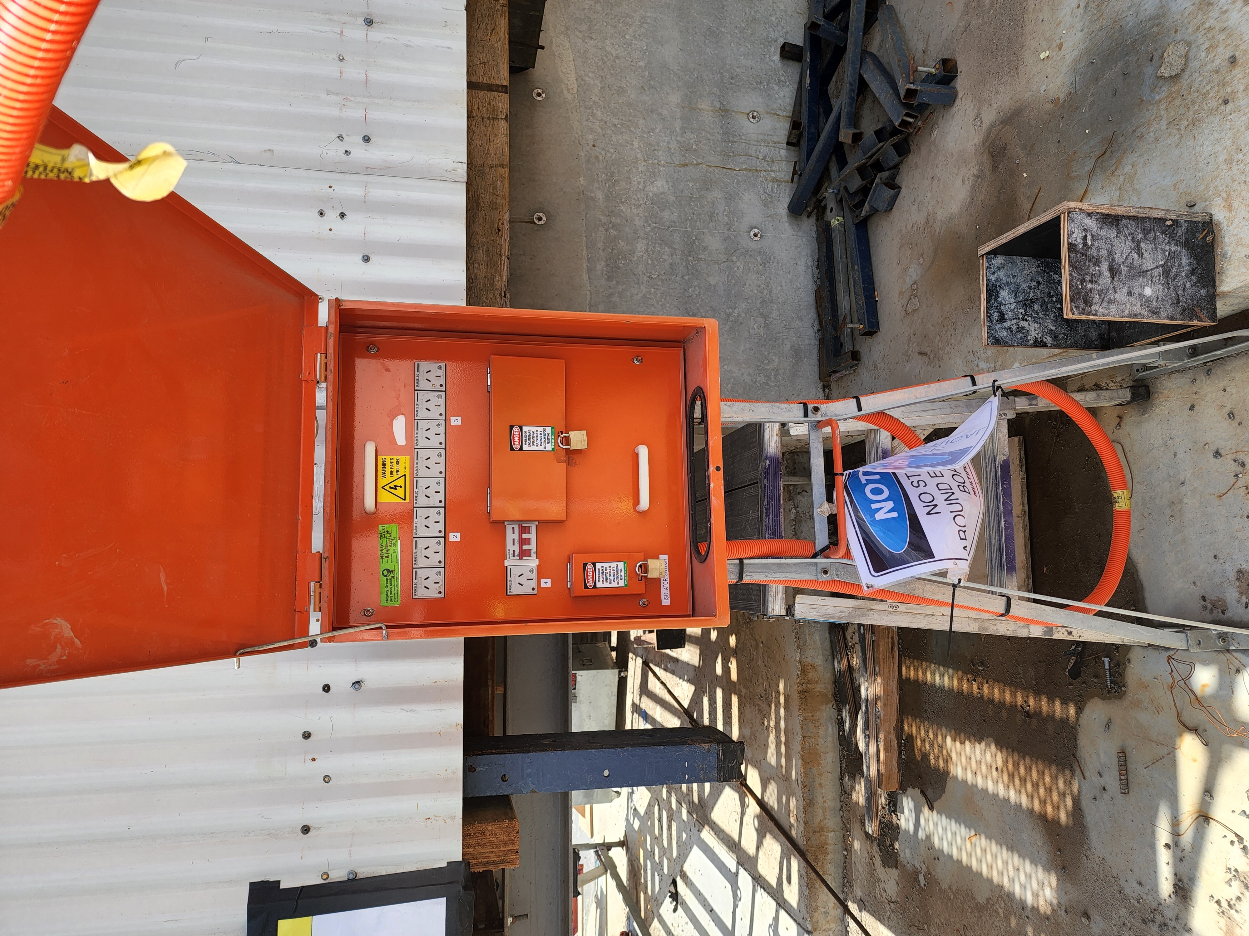 - Robust Hi Visibility 550mm x 480mm x 210mm Powder Coated Steel Enclosure. IP54 Degree of Protection with Removable Double Hinge Lid